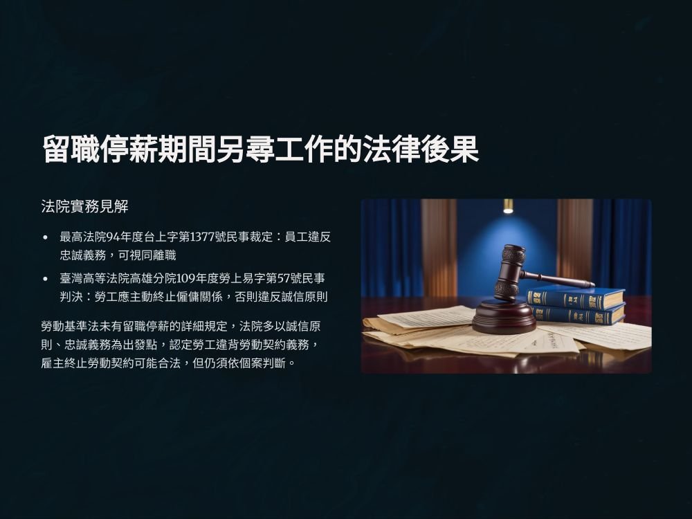 其實留職停薪並不等於終止勞動契約,但若另謀全職、與原工作性質衝突,可能被認定已喪失留職停薪的正當性!