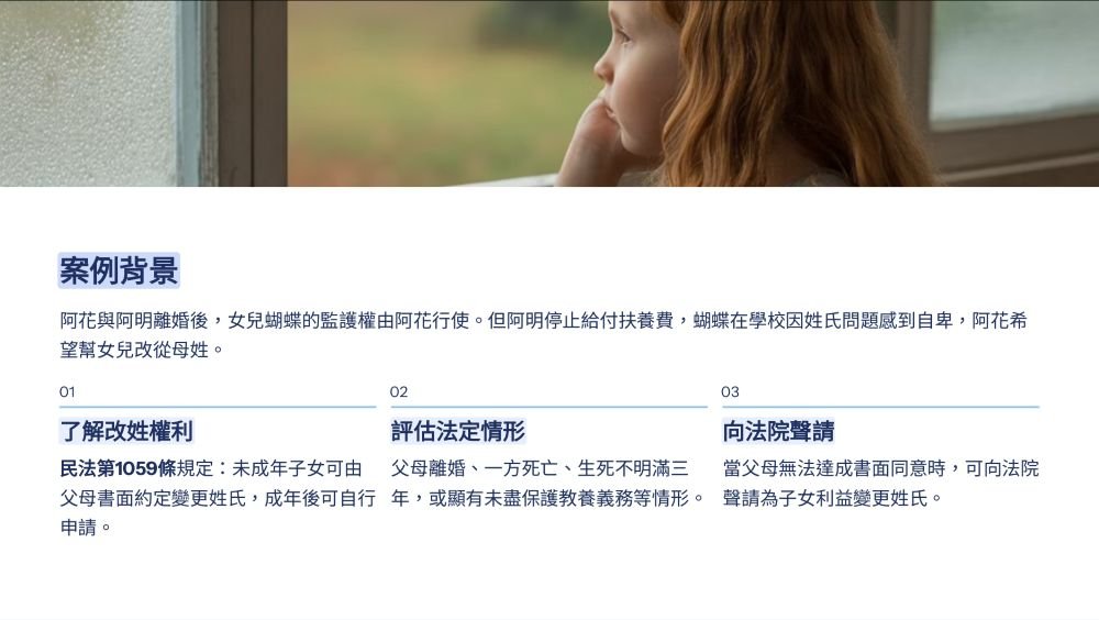 ⚖️根據規定✅父母雙方同意即可辦理改姓✅若另一方不同意,監護人可聲請法院裁定
