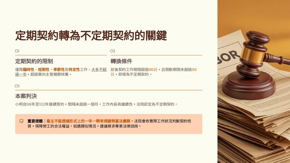 📌一年一聘也可以是不定期契約嗎?期間屆滿,一定沒有保障嗎?